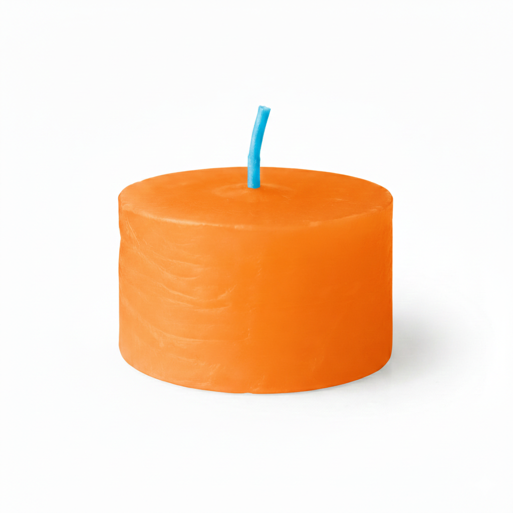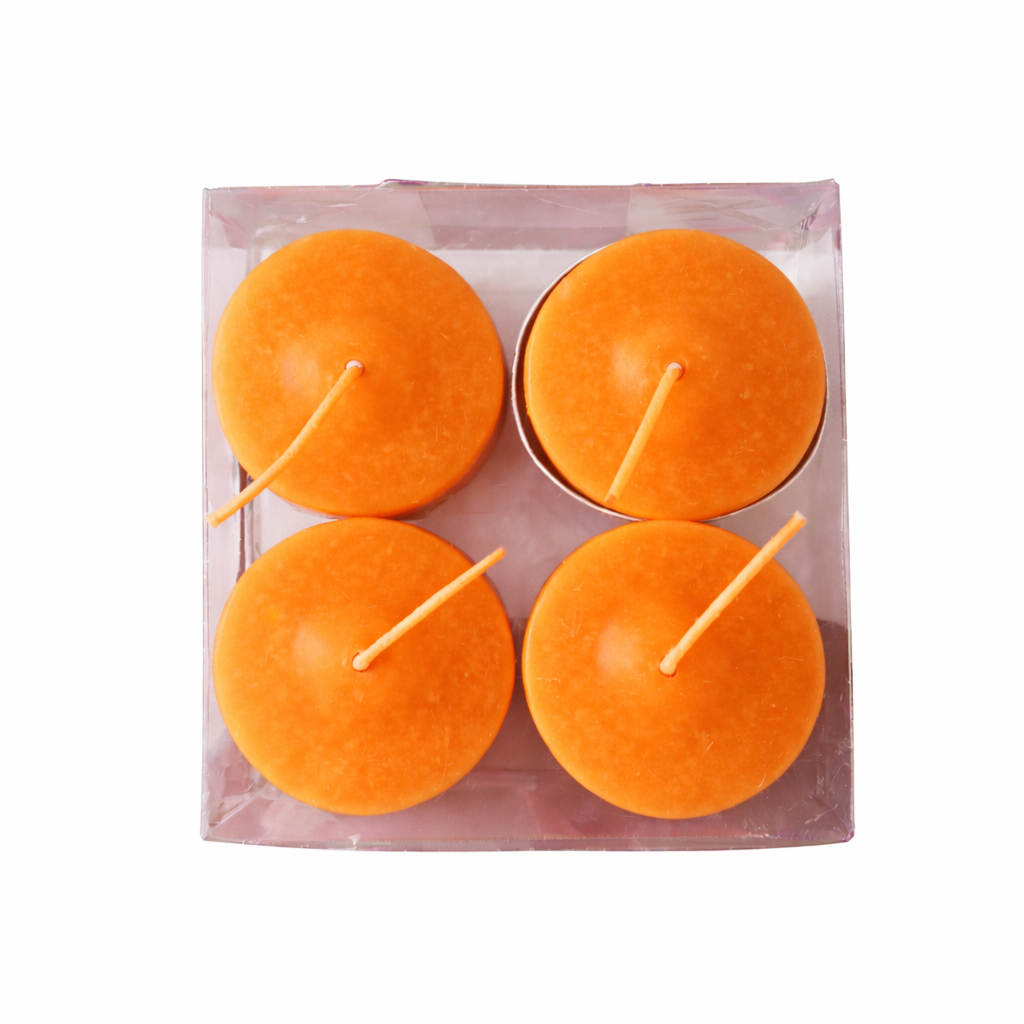 – Altura: 15 mm – Diâmetro: 35 mm – Peso aproximado: 12 g – Pacote contendo 4 unidades – Composição: parafina, pavio e aroma de pêssego